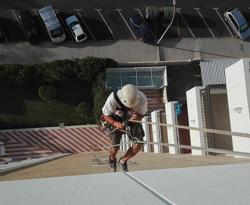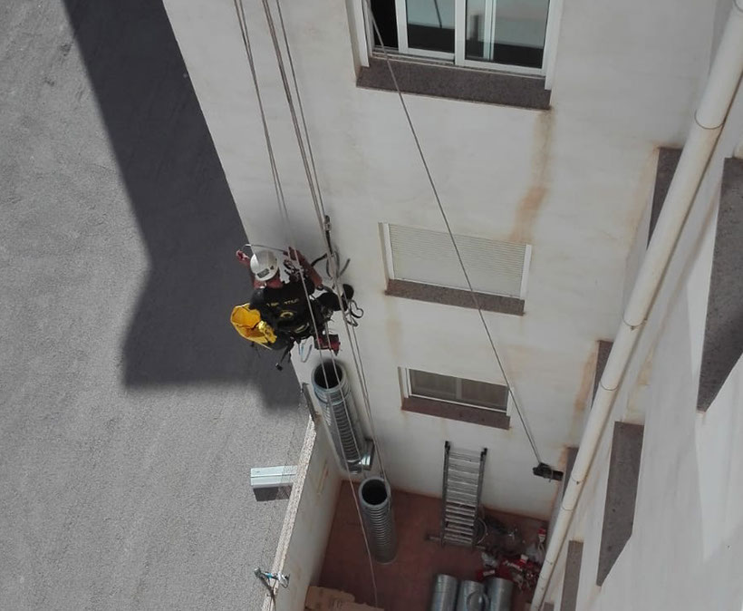 Somos una empresa con más de 20 años de experiencia en trabajos de difícil acceso utilizando equipo y técnicas derivadas del alpinismo y la espeleología conocida como ROPE ACCESS adaptándolo a medios urbanos e industriales: rehabilitación de edificios y fachadas, pintura, publicidad, bajantes, poda en altura, limpieza de edificios, instalación de todo tipo de tuberías y cables (aire acondicionado, acometidas de luz y agua,...), etc.